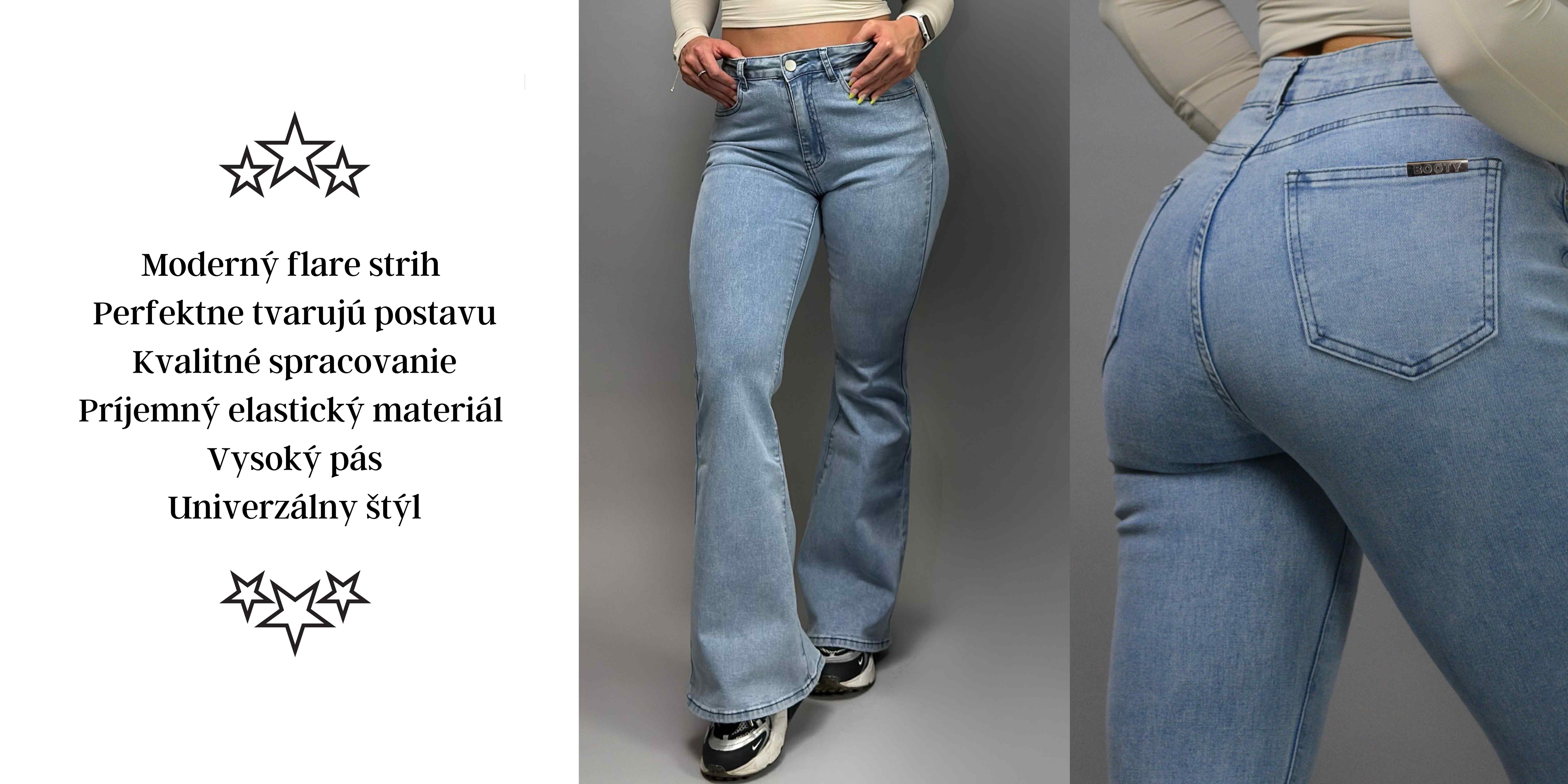 Booty Jeans sú ideálnym spojením komfortu a štýlu – rifle, ktoré vyniknú s teniskami aj s podpätkami a stanú sa kúskom, po ktorom siahneš znova a znova.