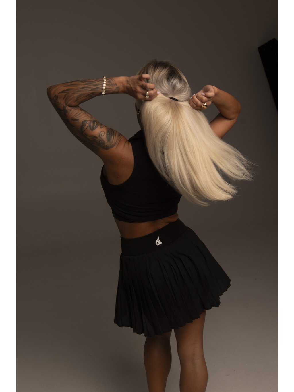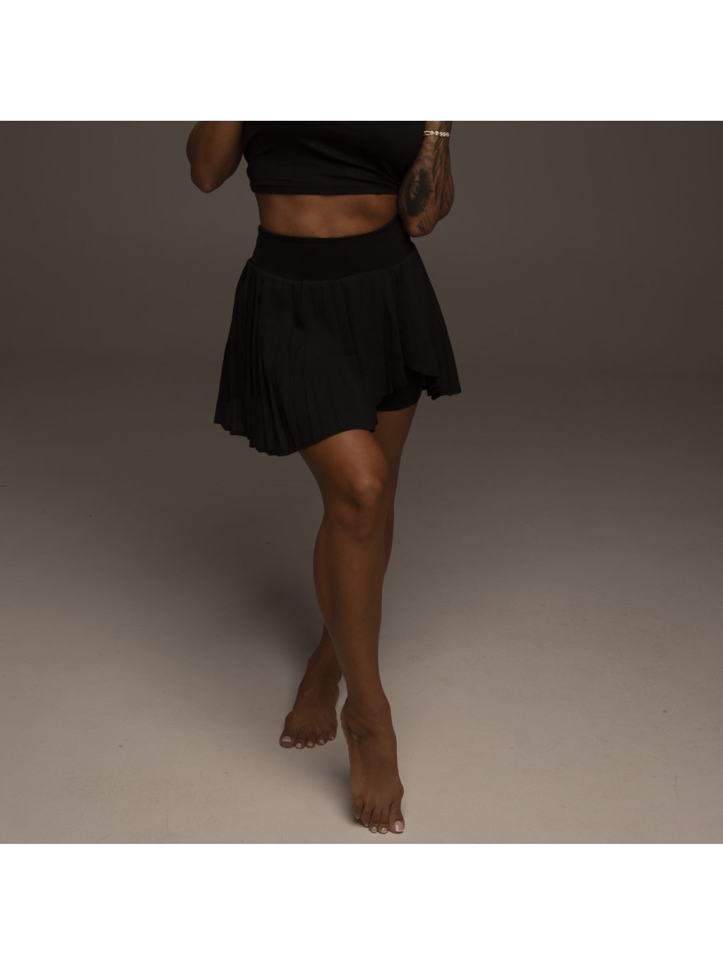 La gonna plissettata dona un aspetto femminile ed elegante, mentre gli shorts garantiscono comodità e funzionalità nei movimenti.