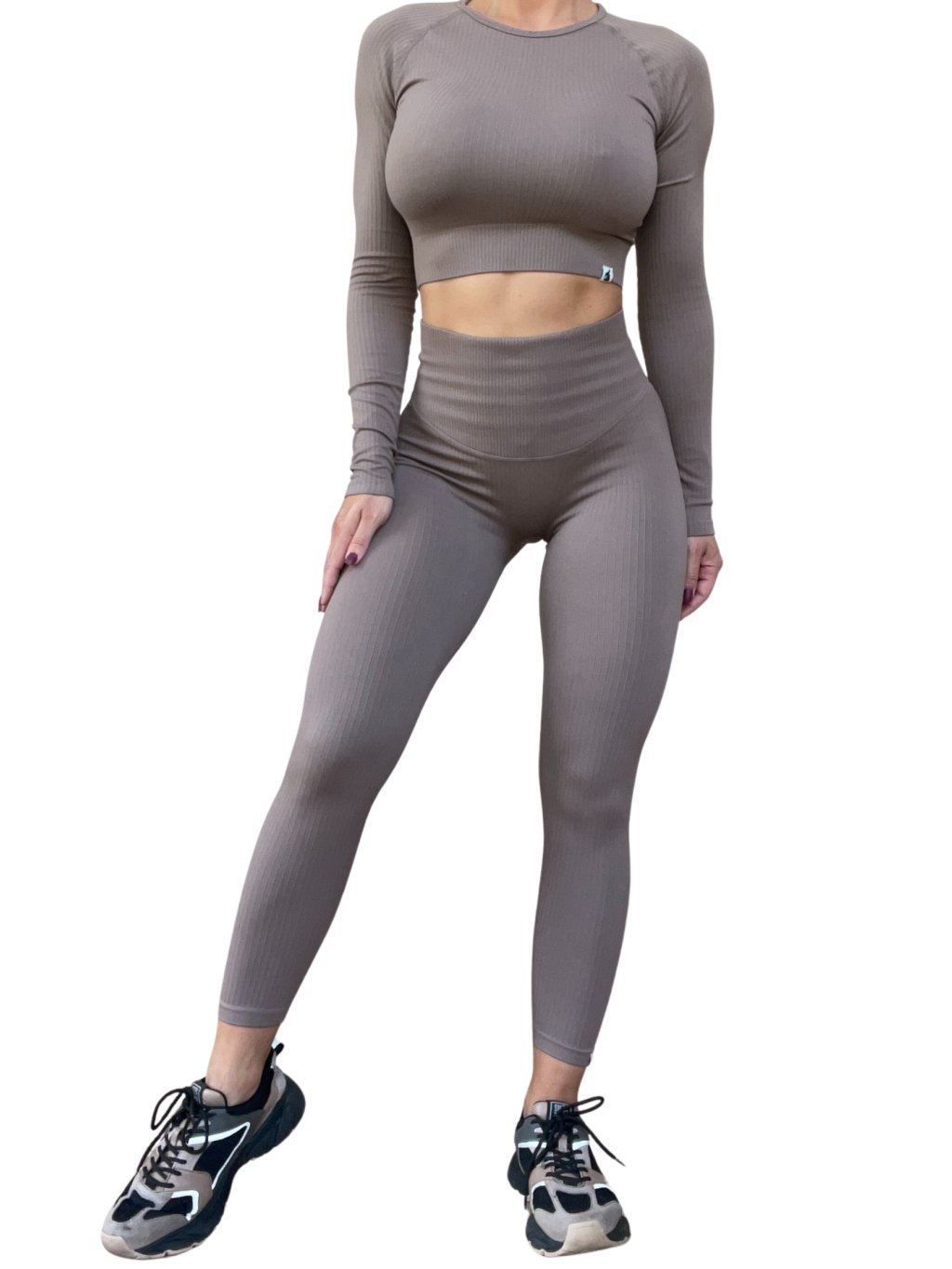 Legíny sú vyrobené z vrúbkovanej, mäkkej strečovej látky, ktorá pekne tvaruje.