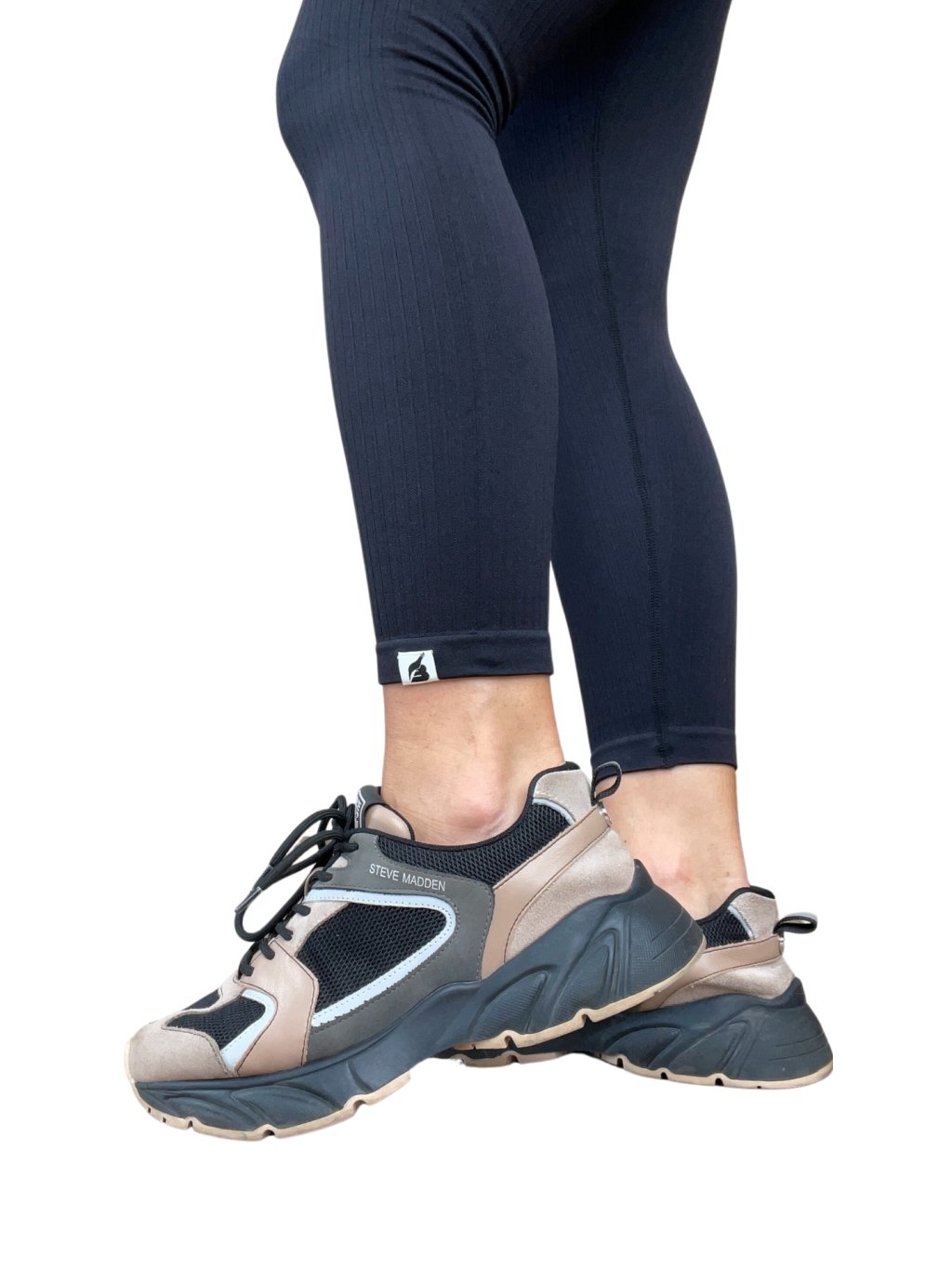Legíny sú vyrobené z vrúbkovanej, mäkkej strečovej látky, ktorá pekne tvaruje.