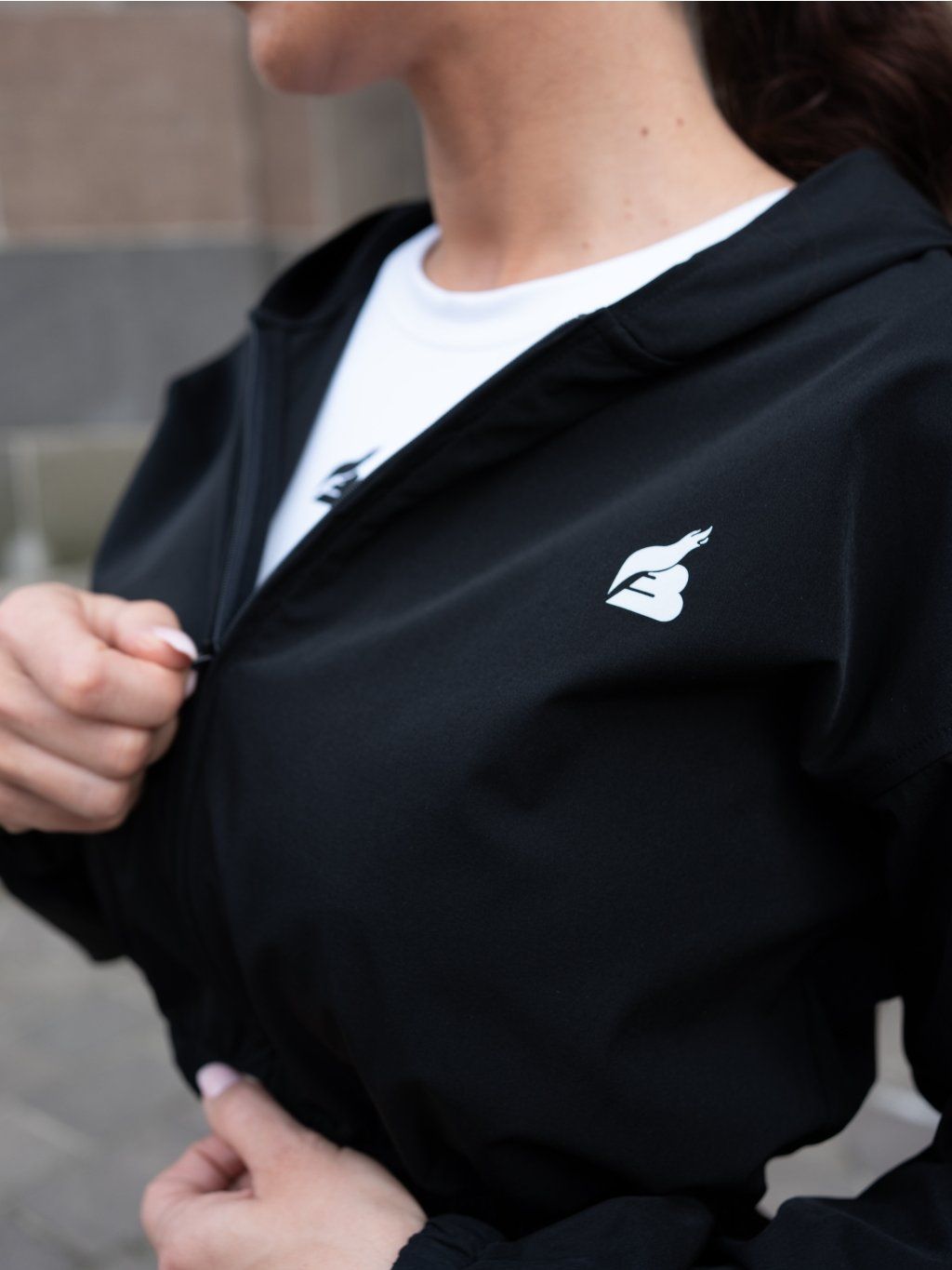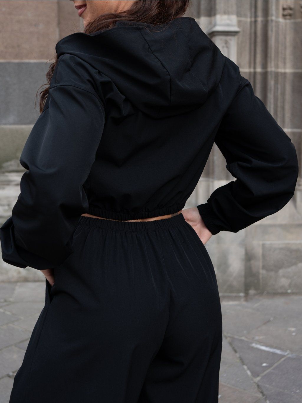 Bunda má kratší crop strih, kapucňu, zapínanie na zips a praktické vrecká. Spodná časť je zakončená elastickou gumou, vďaka ktorej pekne drží tvar a zvýrazňuje siluetu.